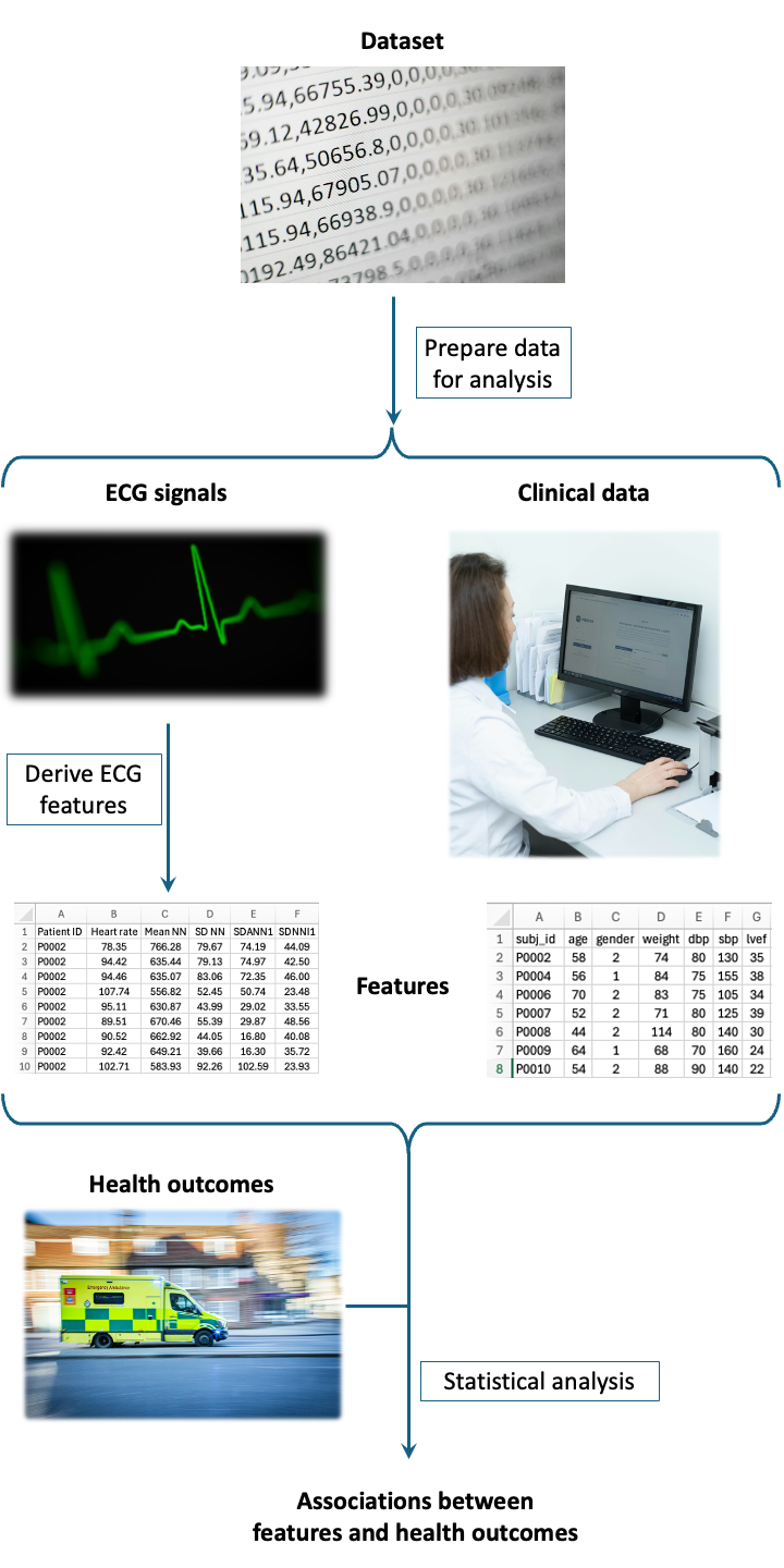 It provides a processing pipeline to extract features from longitudinal ECG signals and investigate the associations between these features and health outcomes.